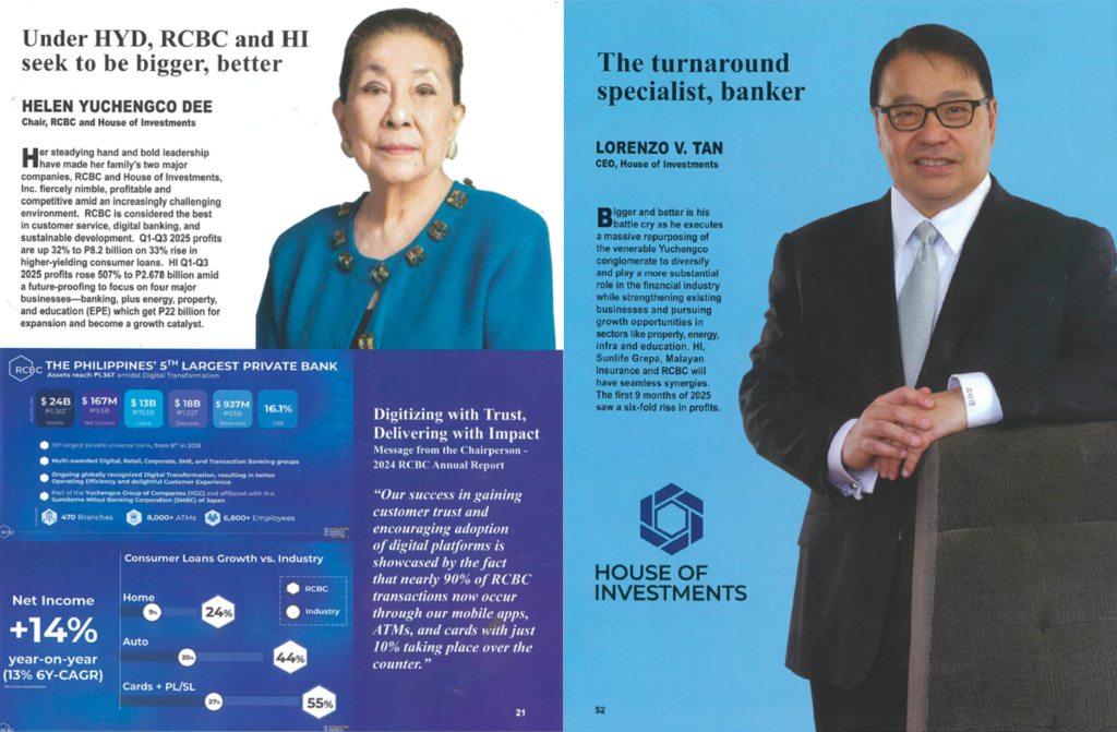 House of Investments is an investment holding and management company with a diversified portfolio and one of the major flagship corporations of the Yuchengco Group of Companies (YGC). The company undertook a portfolio realignment with a bias for recurring income and growth in 2023. As a result, the core business focus of the company is organized into four segments, namely: Financial Services, Property and Property Services, Education, and Automotive. The Company’s portfolio investments are in Energy, Healthcare, Deathcare, and Construction.