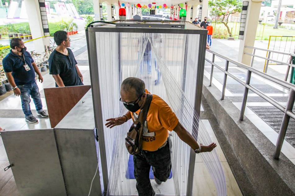 Source: https://news.abs-cbn.com A man passes through disinfection booths known as “GOCLEAN Chambers” and designed by engineers connected to Mapua university set up to stem the spread of COVID-19 at the entrance of the city hall of Quezon City on Friday. In an interview on Wednesday, Quezon City Mayor Joy Belmonte said three of the “hot…